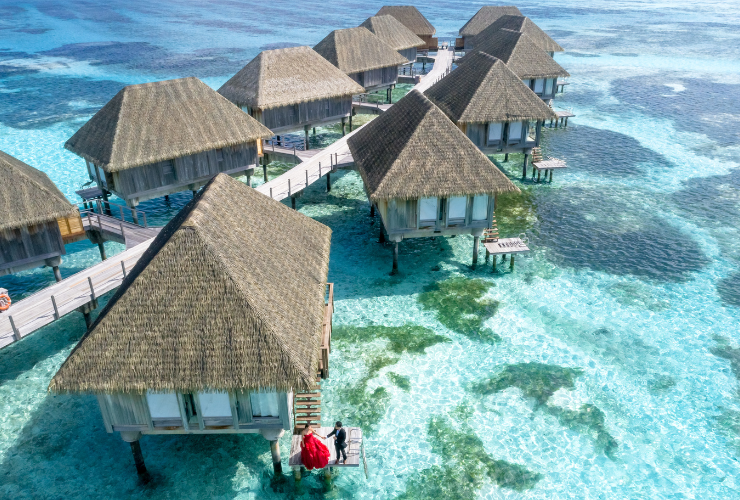 Stay in iconic overwater villas offering luxury, privacy, and stunning ocean views in Maldivesโ pristine waters.